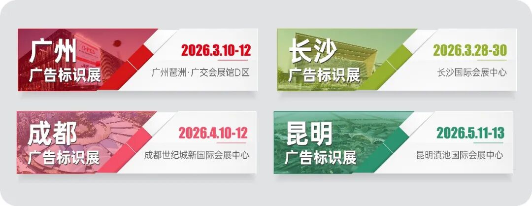 作为行业高度认可的专业展会,每年吸引超千家源头制造商齐聚,无论是供应链上下游对接,还是行业前沿技术洞察,这场展会都是广告标识行业制造商、采购商、分销商及专业人士的年度必参专业盛会。