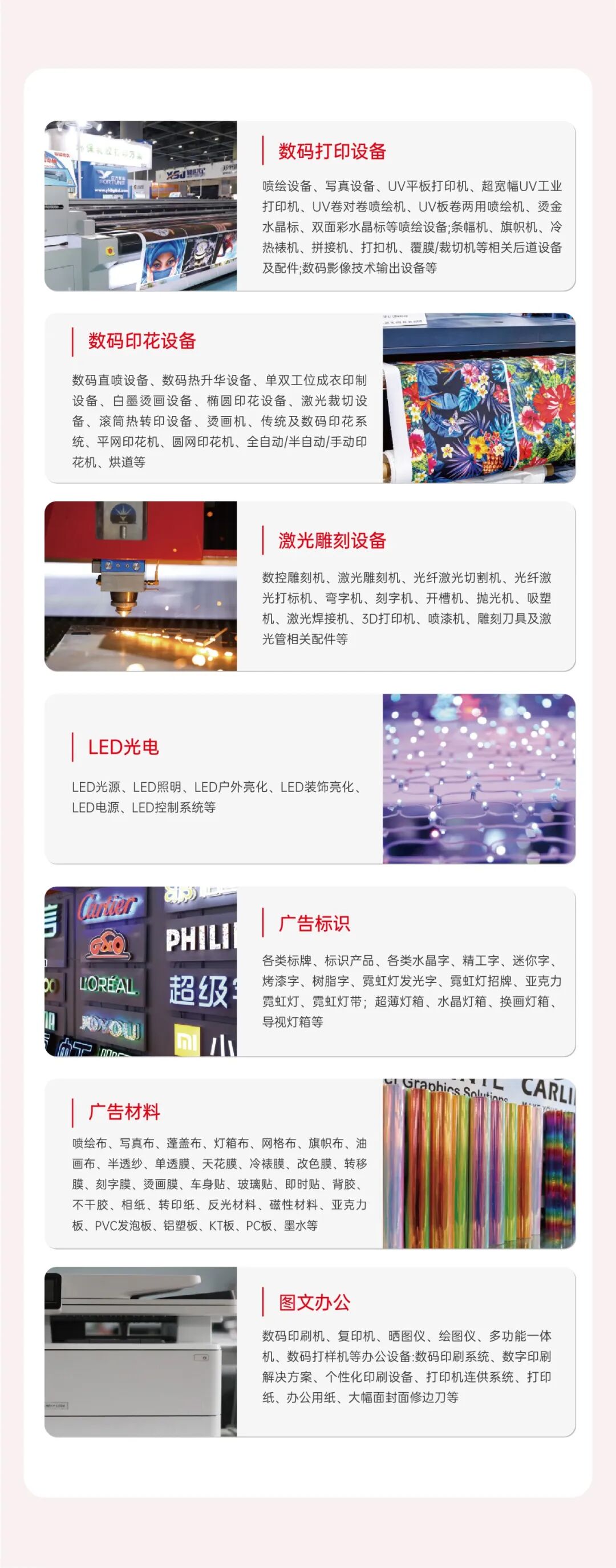 届时,广告制作及工业喷墨印刷供应商将联袂呈现一场精彩绝伦的科技盛宴。从源头工厂到知名品牌,从成熟产品到创新方案,直接对接优质供给方,省去中间环节,采购更放心、合作更靠谱。