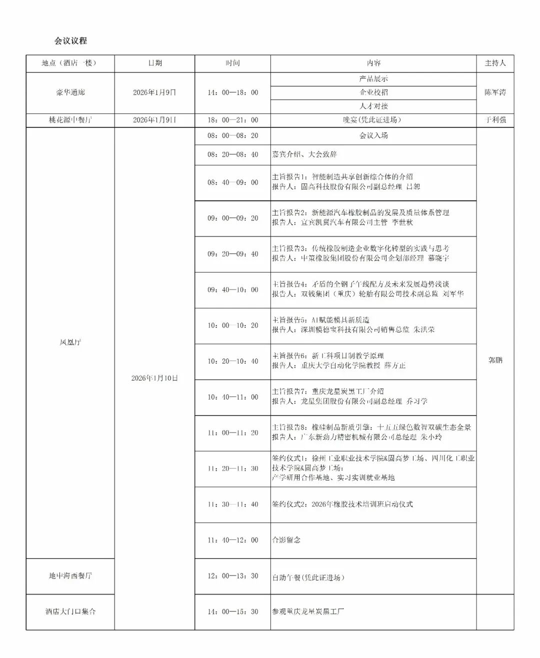 为加快打造国家重要先进制造业中心,我们将坚持智能化、绿色化、融合化为方向,深化“AI+制造”,优化提升传统产业。为了推进西部橡胶企业的科技创新和产业创新,实现产学研的深度融合,我们特召开西部橡胶产业智能制造共享创新峰会,定于202619-10日在重庆长寿区举行。