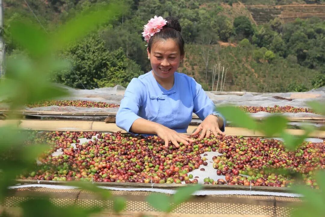 孟连咖农晾晒咖啡豆。沈浩 摄