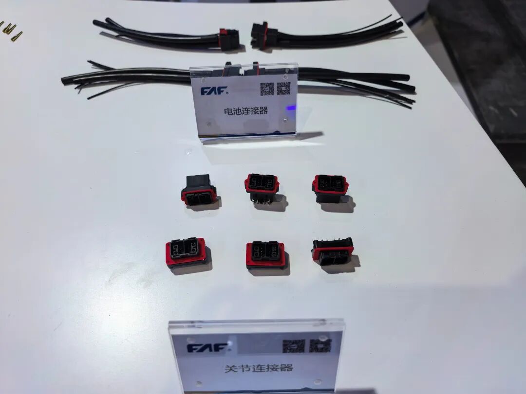 除了静态的产品陈列,嘉华电子通过动态人形机器人的实景应用展示,详细说明了连接器产品在人形机器人上的具体应用。