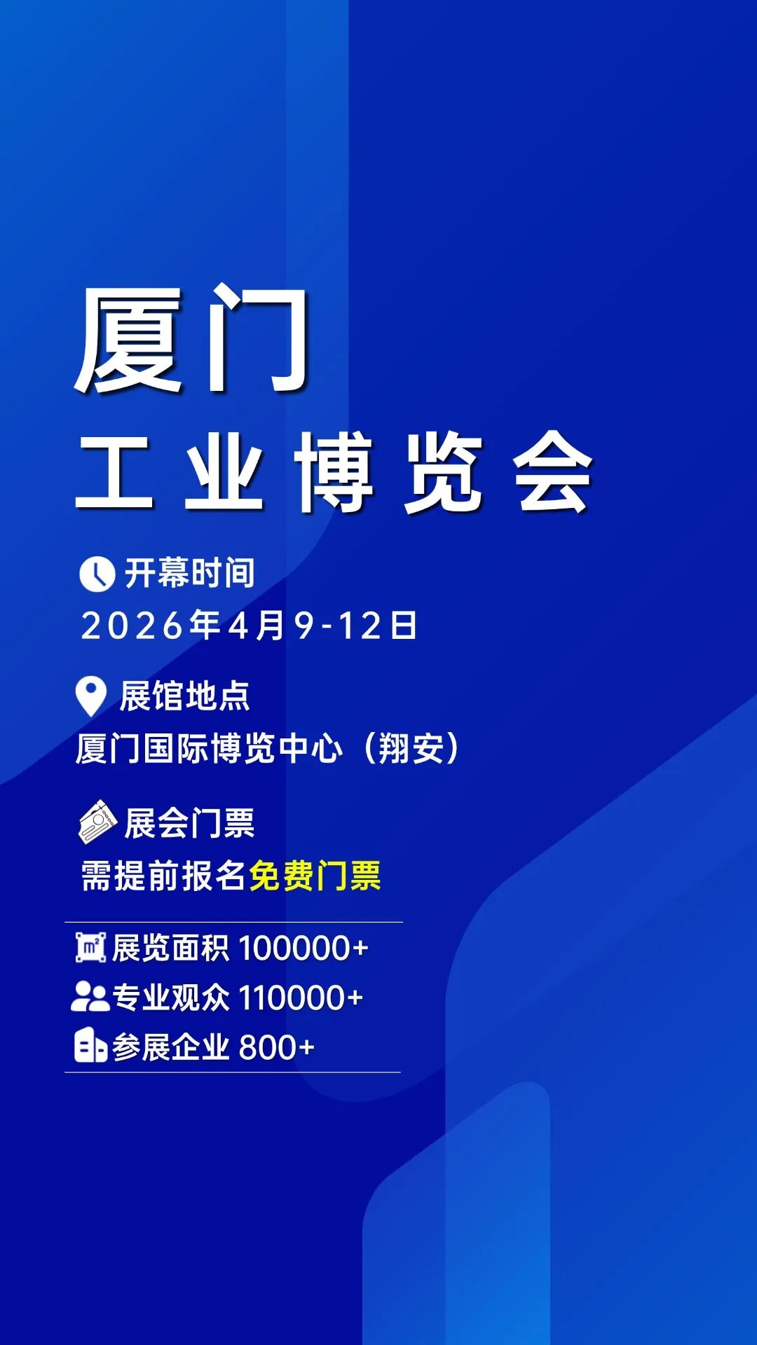2026厦门工业博览会暨第30届海峡两岸机械电子商品交易会(简称“厦门工博会”)将于4月9-12日在厦门国际博览中心震撼开幕!