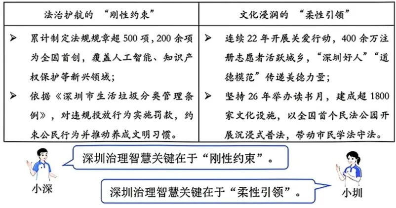 45年来,深圳牢记习近平总书记关于城市治理的重要论述,书写了“中国之治”的城市范例。为解码深圳治理智慧,同学们搜集了以下案例,并展开热议。