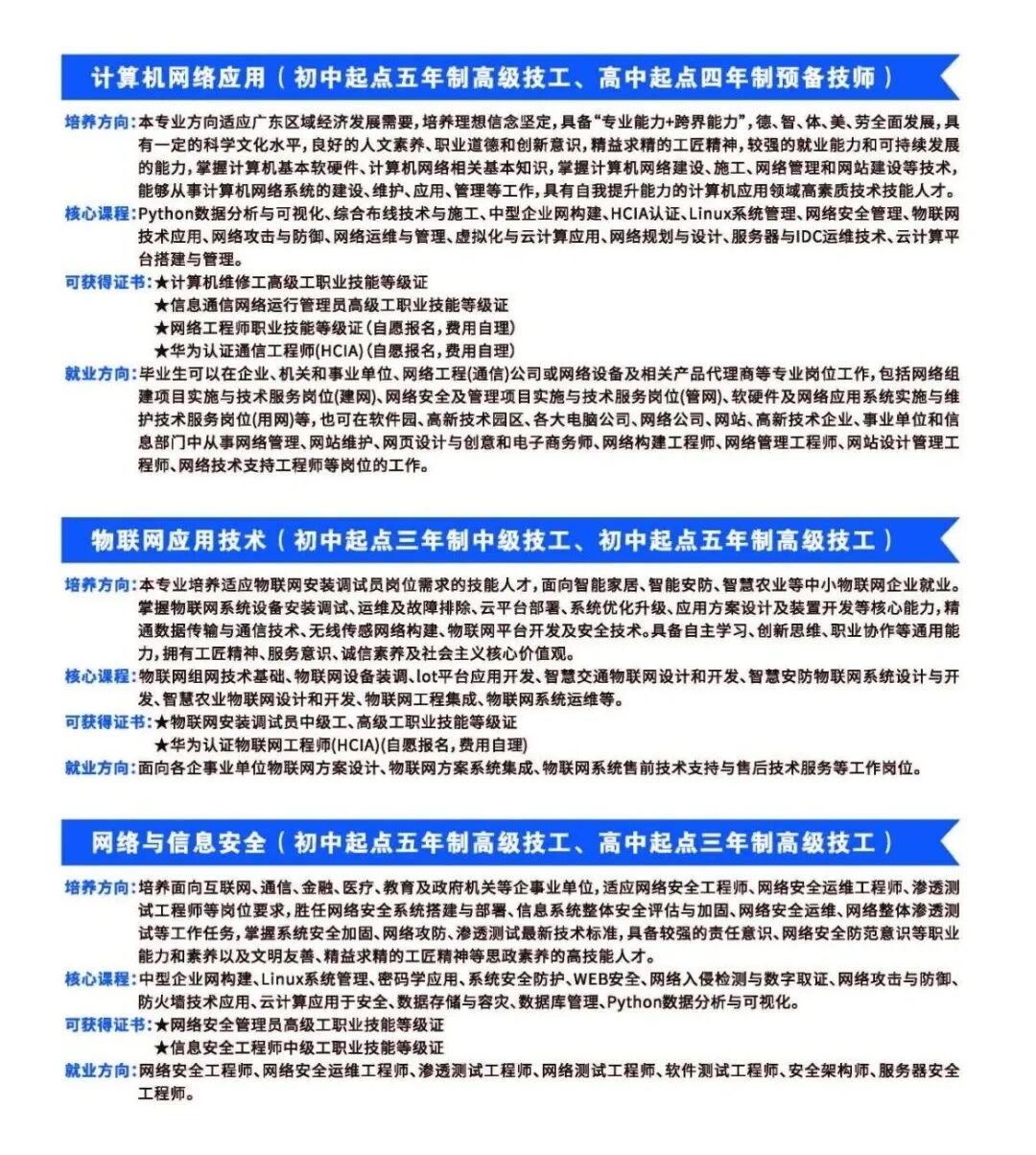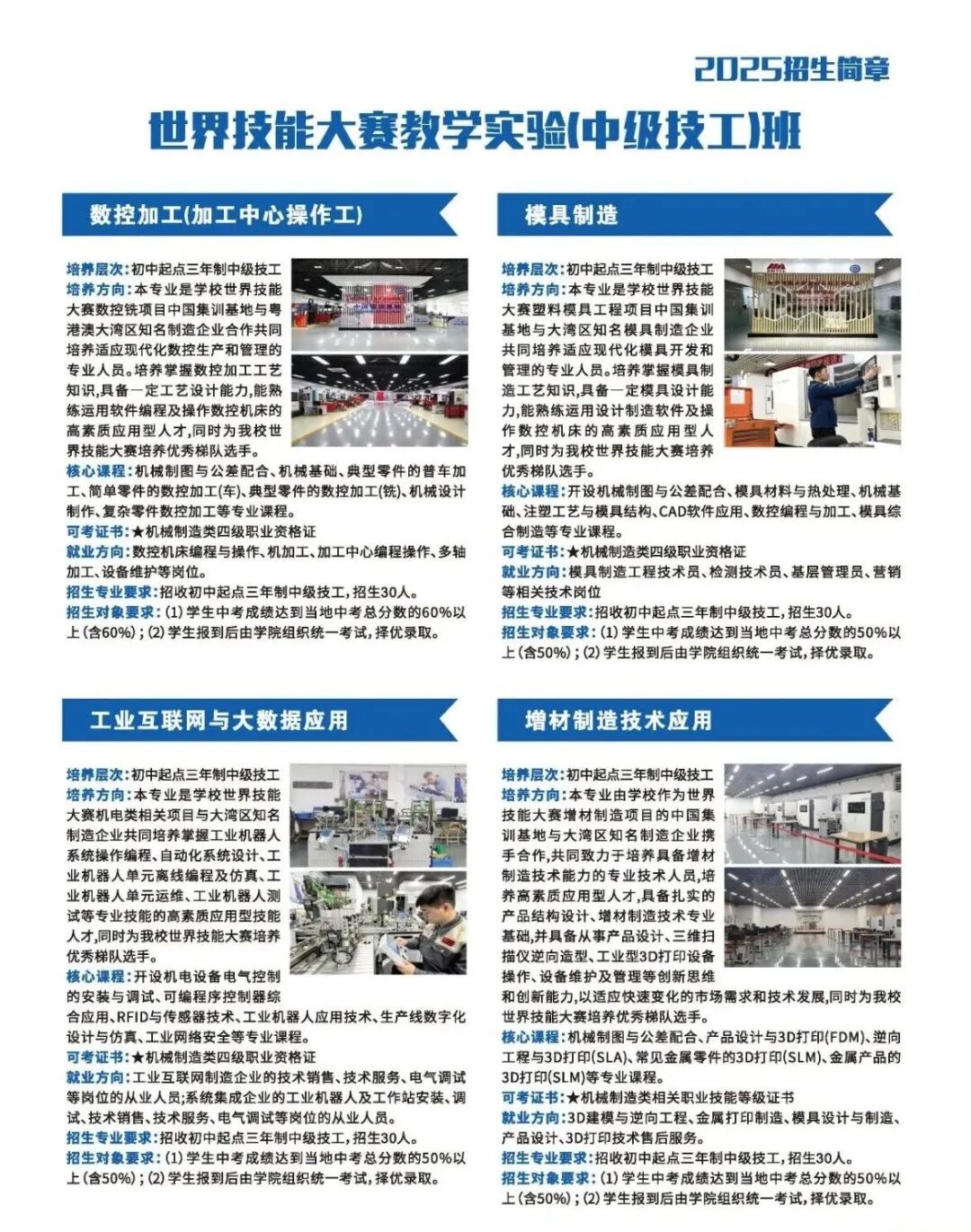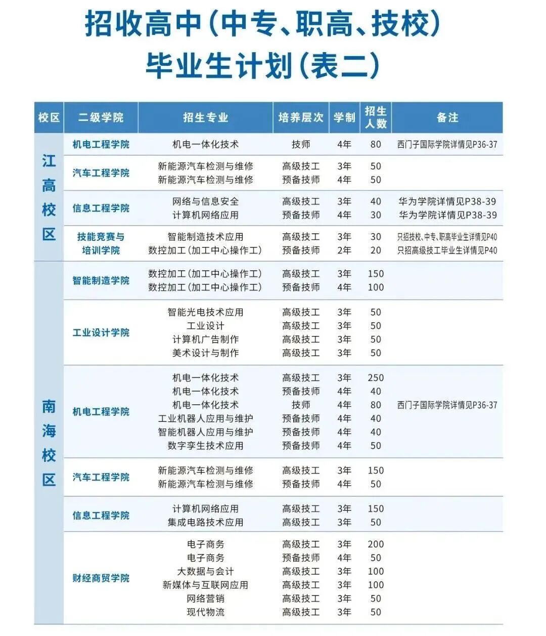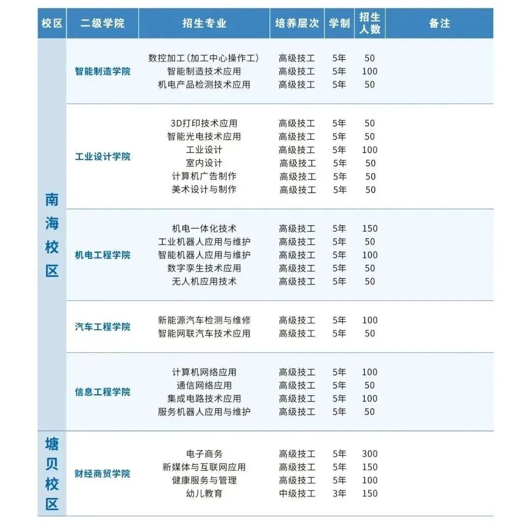 2.三年制中级技工、五年制高级技工:招收初中毕业生;