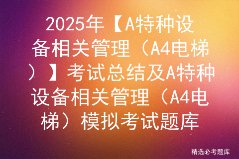 A特种设备相关管理(A4电梯)考试总结根据新A特种设备相关管理(A4电梯)考试大纲要求,安全生产模拟考试一点通将A特种设备相关管理(A4电梯)模拟考试试题进行汇编,组成一套A特种设备相关管理(A4电梯)全真模拟考试试题,学员可通过A特种设备相关管理(A4电梯)模拟考试题库全真模拟,进行A特种设备相关管理(A4电梯)自测。