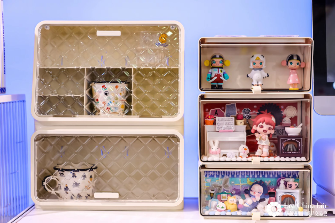 “我们每一款收纳盒的模具开发周期都比行业平均缩短30%,这得益于二十年积累的工艺数据库。”米嘉家居研发总监李明在展位现场向采购商介绍。展台上陈列的“三层潮玩展示盒(带灯款)”正是技术实力的体现:通过模块化设计,用户可自由组合层数;内置的LED灯带采用磁吸式安装,无需工具即可更换位置。这种“设计+功能”的双重创新,让该产品月销突破1200件,成为亚马逊家居类目畅销品。