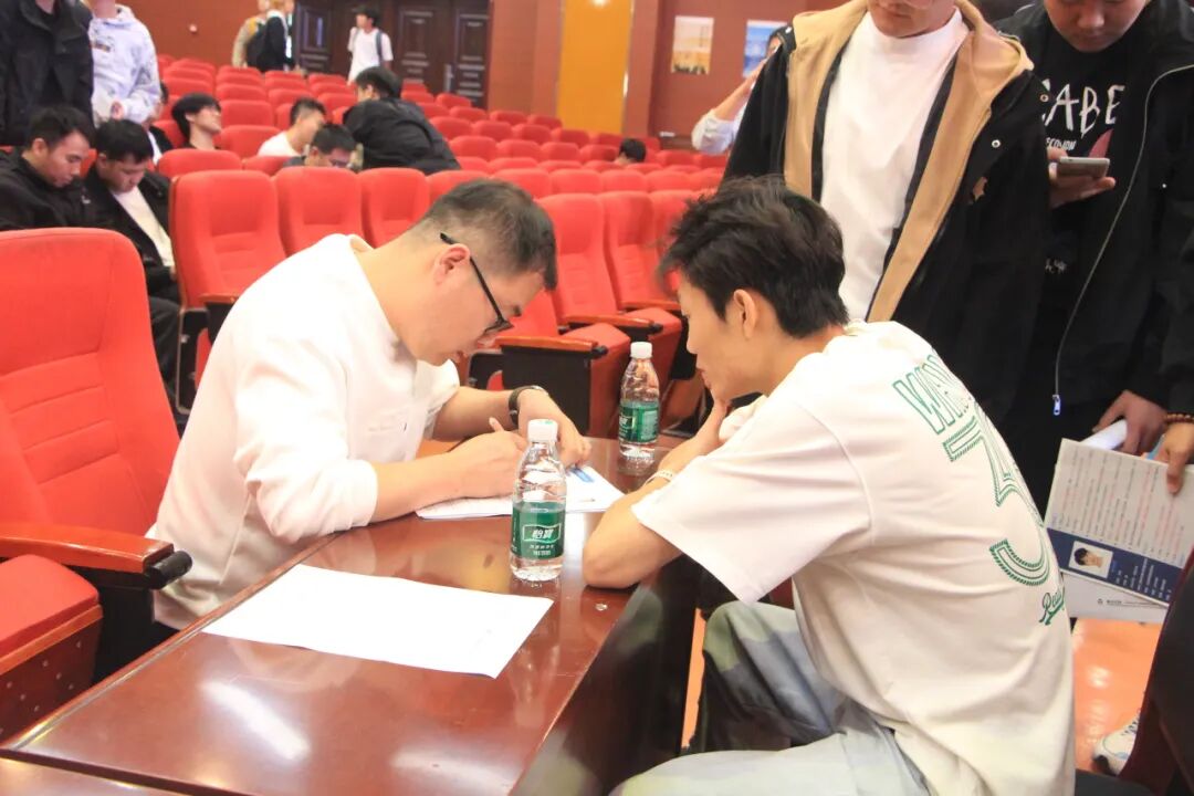 在聆听了学院领导、企业代表和学长的多维度介绍后,现场进入了互动交流环节。同学们踊跃提问,就选拔标准、课程难度、实习安排、未来就业的具体岗位等细节问题与在场的嘉宾和老师进行了深入沟通。现场还进行了报名及面试环节。