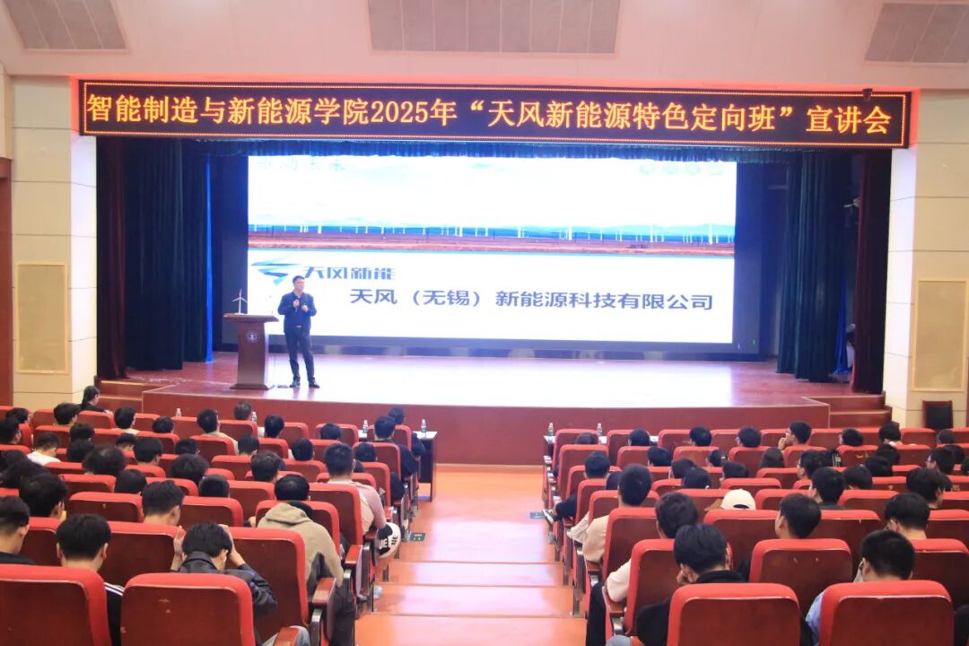 本次宣讲会的成功举办,不仅成功地向学生们推介了“天风新能源特色定向班”这一优质平台,更深刻地展示了智能制造与新能源学院在深化产教融合、创新人才培养模式上的积极探索,为推动我国新能源事业高质量发展注入源源不断的青春动能。