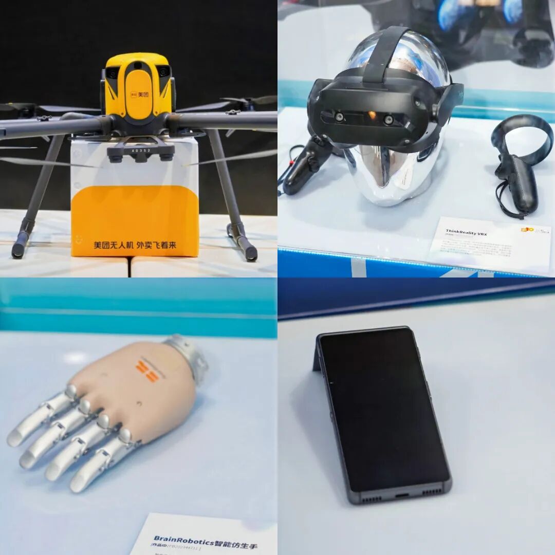 本次DIA参展作品中,有美团第四代城市物流无人机,针对复杂城区环境优化气动布局与降噪结构,实现安全、高效、低扰民的即时配送服务,推动低空经济融入日常生活;有全球首款采用“煎饼镜头”技术的联想ThinkReality VRX虚拟现实头显,以超薄机身实现高分辨率全彩透视与板载混合现实计算,大幅降低佩戴负担;有BrainRobotics智能仿生手,专为儿童截肢者设计,通过肌电信号识别与AI算法驱动,实现直观、灵活的手势控制,突破传统假肢功能局限,让科技温暖生命;还有讯飞双屏实时翻译设备,通过上下屏同步呈现原文与译文,支持会议、演讲、离线等多场景下的同传级高效沟通。