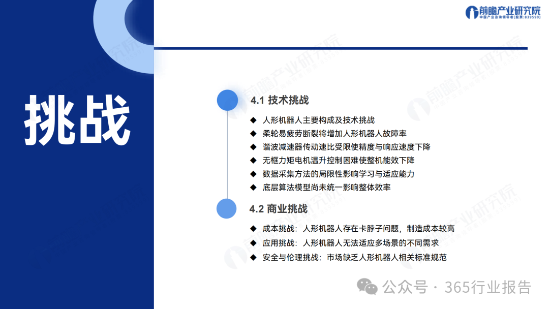 然而,要实现这一目标,还需要克服诸多挑战。技术上,需要进一步突破关键零部件的技术瓶颈,提高人形机器人的性能和可靠性。商业上,需要降低成本,提升人形机器人的市场竞争力。安全与伦理方面,需要建立完善的标准规范,确保人形机器人的安全可靠使用。