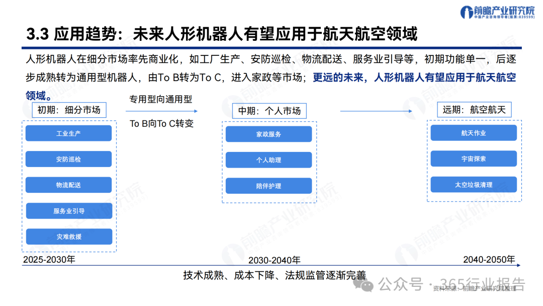 人形机器人的未来充满希望。随着技术的不断进步,人形机器人将在更多领域实现商业化应用。从制造业到家庭服务,从物流配送到航天航空,人形机器人将成为人类生活和工作的得力助手。预计到2030年,人形机器人将在全球范围内广泛应用于工业生产、安防巡检、物流配送等领域,并逐步进入个人市场,提供家政服务、个人助理等功能。
