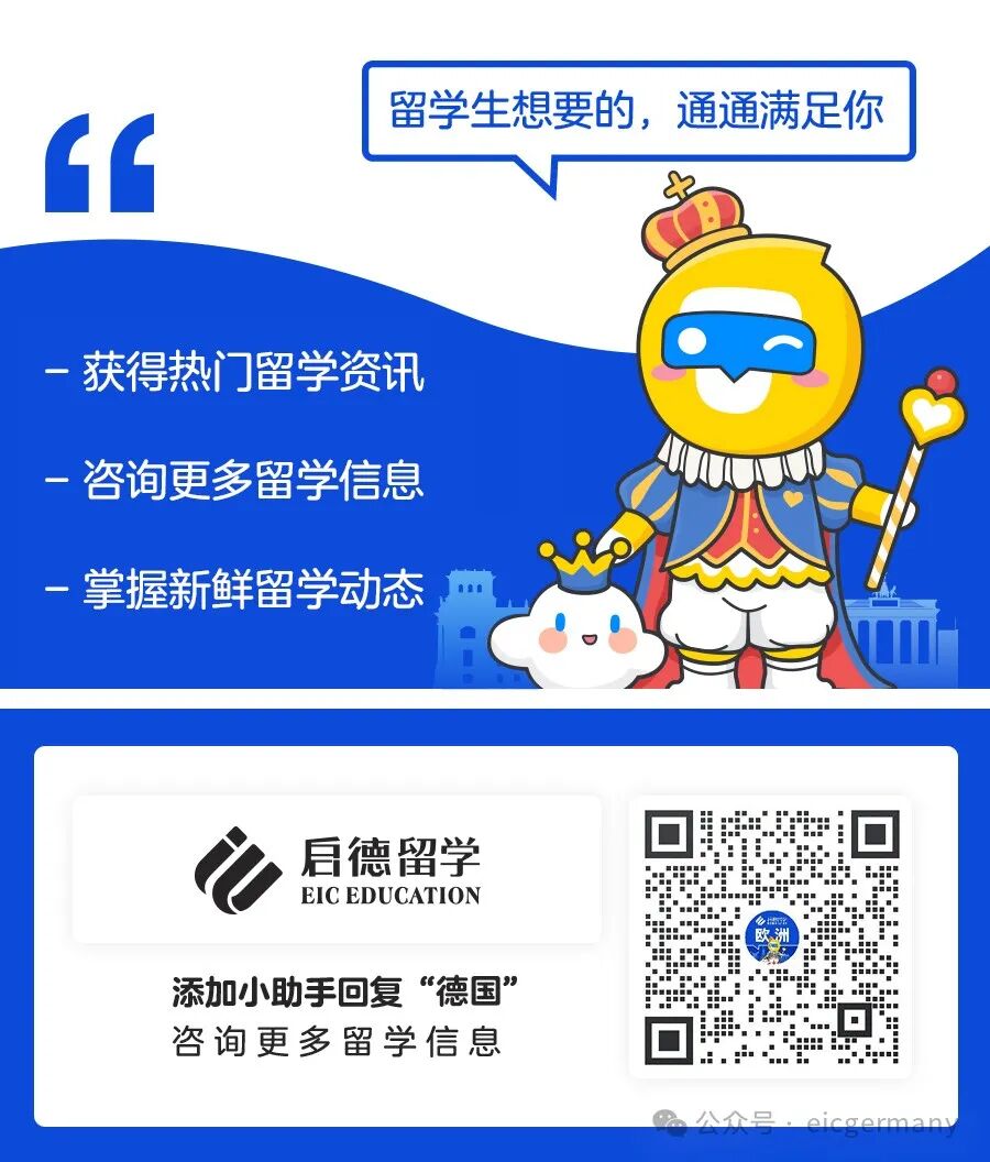 若想了解更多德国高校及专业资讯,请关注我们,欢迎大家来咨询小启!启德德国专家团队随时为你解答留学疑惑,点击关注获取更多德国留学干货!