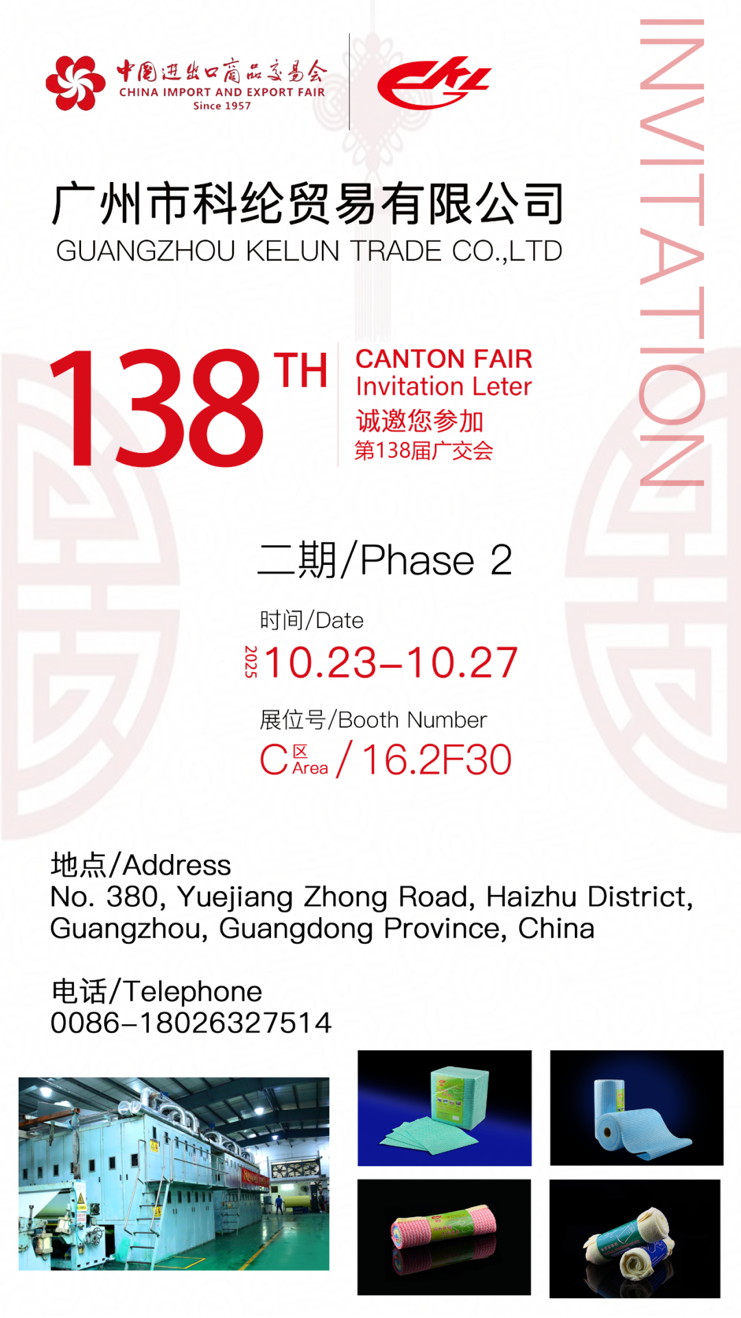 2025年10月23-27日,第138届中国进出口商品交易会第二期将在广州举办。广州市科纶实业公司应邀参加展会。