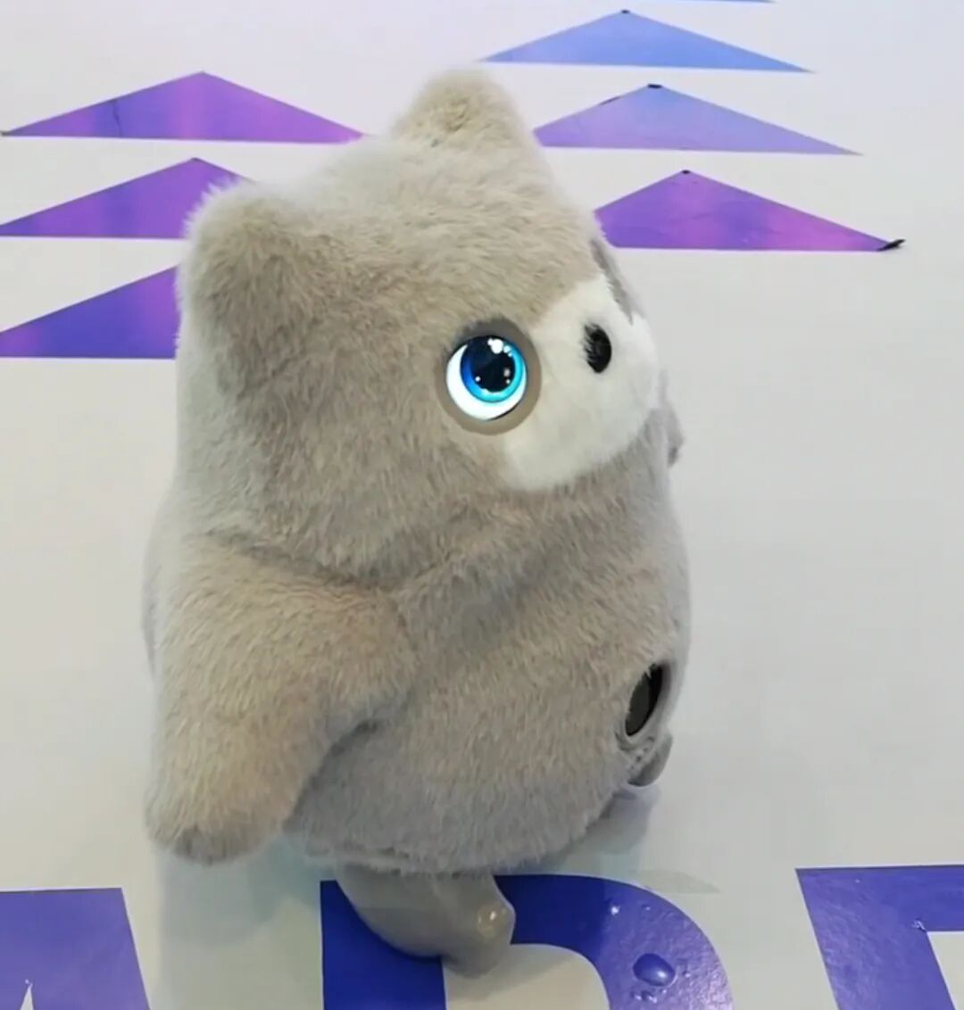 展区内还有一只超级可爱的灰色的仿生猫头鹰机器人,毛茸茸的摸上去手感特别好,而且眼睛一眨一眨地非常萌,甚至模拟了动物体温,像是有温度的宠物。