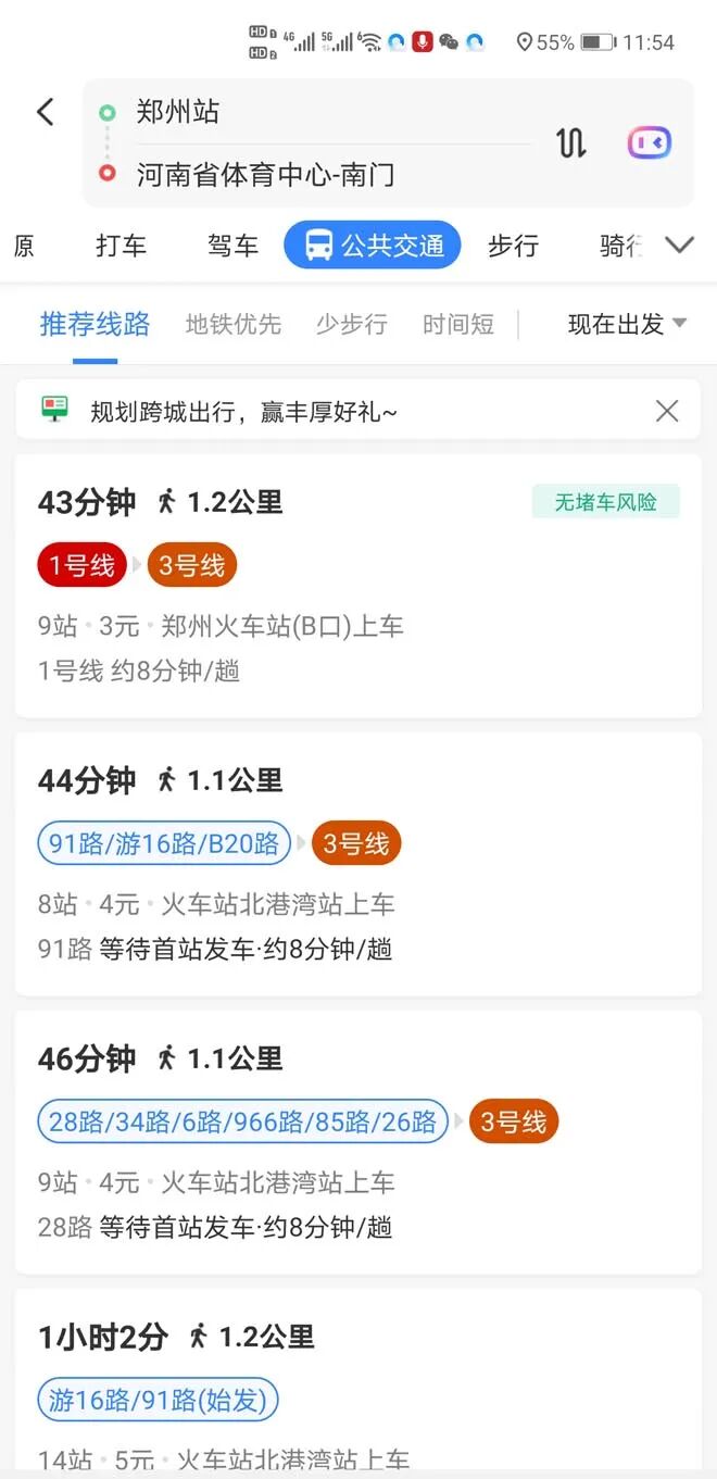 郑州站来展会现场的游客,可以步行400米在一号线郑州火车站 上车,沿河南大学新区方向乘坐1站,在二七广场站下车换乘3号线,沿省体育中心方向乘坐8站,并在省体育中心站 (A口出)下车,步行 530米到河南省体育中心南门,全程大约需要 43分钟。