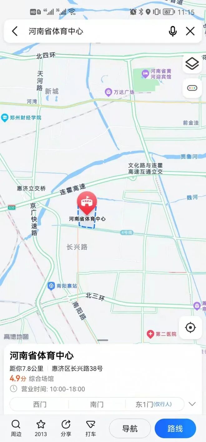 在百度地图或者高德地图搜索河南省体育中心,即可自驾导航前往。