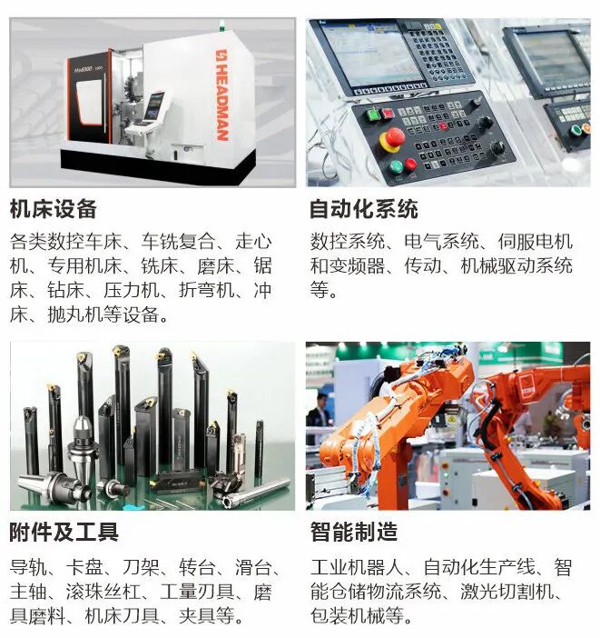 五轴、龙门、立式、卧式等加工中心;深孔钻、型材加工中心、组合机床、复合机床、雕铣机床、车床、磨床等。