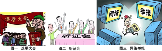 16.(1)图一:民主选举;图二:民主决策;图三:民主监督。