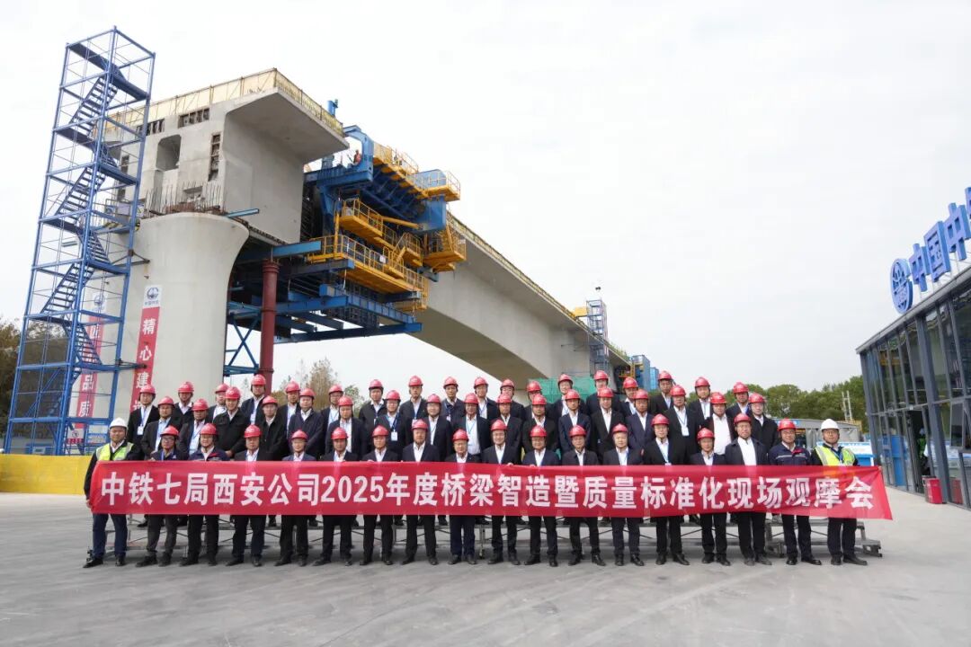 10月28日至29日,中铁七局西安公司2025年度桥梁智造暨质量标准化现场观摩会在嘉兴通甬高铁项目部成功举办。会议以“智造赋能、标准领航、品质致胜”为主题,既是对公司桥梁建造技术体系的一次集中检阅,更是贯彻落实中国中铁“大商务管理”战略,深耕公司“三种文化”的具体实践。公司总经理朱新斌,总工程师、副总经理张耀洪出席观摩会,公司相关部门负责人及23个项目部(分公司)经理、总工程师、商务经理共计50余人参加会议。