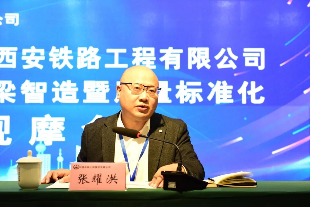 公司总工程师、副总经理张耀洪结合公司桥梁智能建造技术及质量管理标准化现状发表了讲话,并提出了四点意见:一是以“智造”为核,打造新质生产力。要做到数字管控全覆盖,智能装备再升级,绿色低碳贯穿始终;二是以“标准”为纲,夯实质量提升长效机制。要做到标准先行、样板引路、数字验收、质检品控;三是以“大商务”为轴,深挖盈利新潜能。要做到超前策划、技术挖潜、供应链共赢;四是以“三种文化”为魂,凝聚高质量发展强大动能。让每一道工序都成为利润增长点,让每一项工程都成为市场敲门砖。