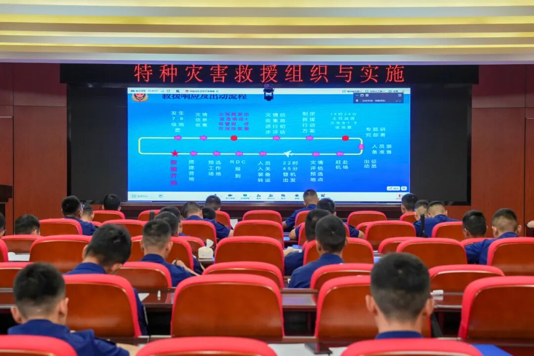 两名同志全程参与中国救援队队伍发展建设工作,曾参加河南抗洪、土耳其和缅甸国际地震救援行动,特别是在地震和洪涝灾害救援领域,具有丰富的实战救援经验,就《特种灾害救援组织与实施》进行授课辅导。