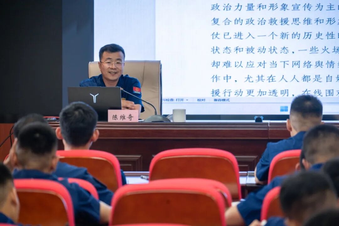 陈维奇处长先后参与森林火灾、地震救援、抗洪抢险等任务70余次,被武警部队聘为网络舆情专家,荣获中国武警十佳新闻工作者、第六届中国人民解放军新闻奖等殊荣,曾担任内蒙古金河森林火灾现场新闻发言人,是新华社网情参考“应急救援”栏目、中国林业杂志“中国森警”栏目、中国青年报“最美火焰蓝”栏目的创办人,同时也是“中国森警”微信公众号的创始人,编辑出版了《家在奇乾》《森林消防常识漫画》《大凉山的回声》等图书,在森林消防宣传领域具有独到见解,就《新闻媒体和网络舆情应对》进行辅导授课。