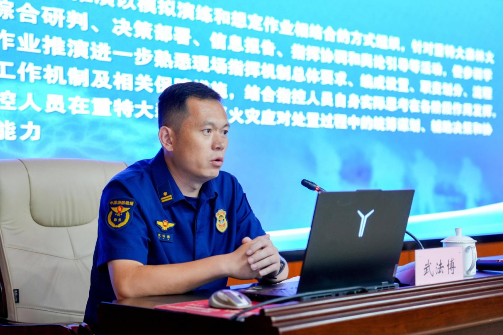 武法博副主任是作训战线优秀的业务骨干,曾多次作为前指指控要素陪同主要领导赴森林草原火灾现场指挥灭火作战,具有丰富的灭火实战经验,在协助应急管理部风险监测和火灾综合防治司工作期间,参与起草了《扑救森林草原火灾现场指挥机制》等多项法规类文件,对授课内容具有深入的认识和见解,就《前指工作相关法规》进行解读。