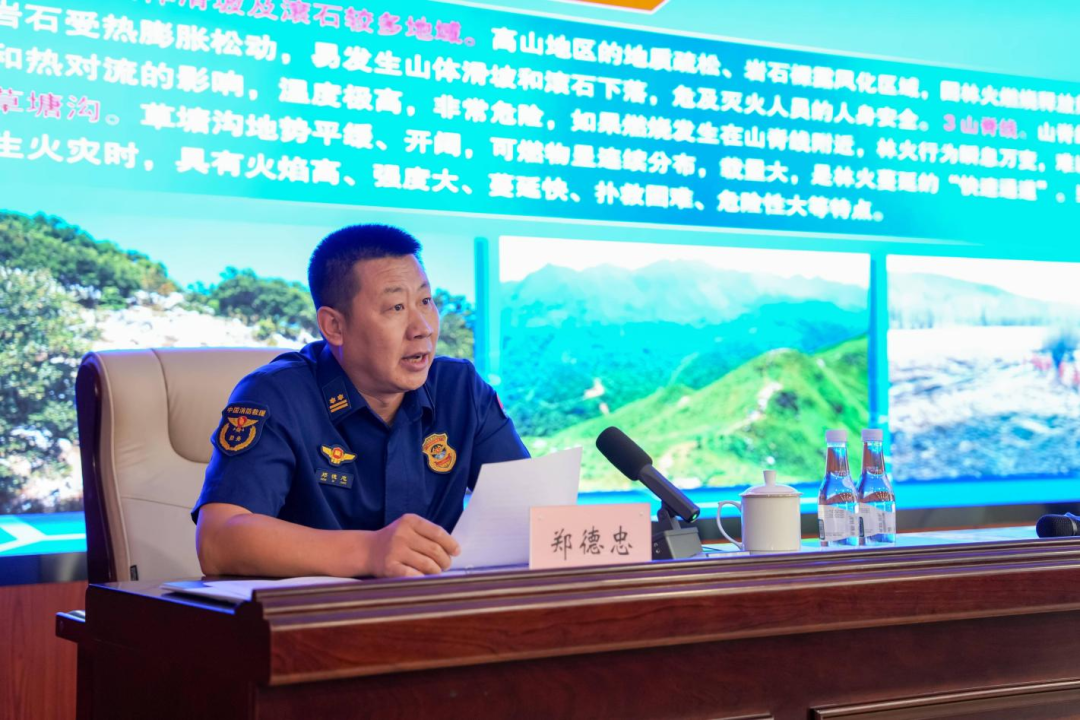 郑德忠支队长从事森林草原火灾扑救和应急救援工作已有25年,曾参与指挥2018年雅江“2·17”、2019年凉山冕宁“4·7”、2020年木里“3·28”、2022年西昌“3·10”、2024年雅江“3·15”等百余起重特大森林火灾扑救任务和汶川地震、泸定地震、宜宾长宁地震、金阳泥石流等多起重大自然灾害抢险救援任务,具有丰富的森林灭火实战经验和理论功底。2019年被选派赴俄罗斯航空森林局开展森林草原防灭火国际交流,先后被评为“国家森林防火先进个人”、武警部队“维稳战役先进个人”、四川省“抗击重大自然灾害先进个人”,荣立二等功1次、三等功3次,就《灭火安全工作的组织与实施》进行辅导授课。