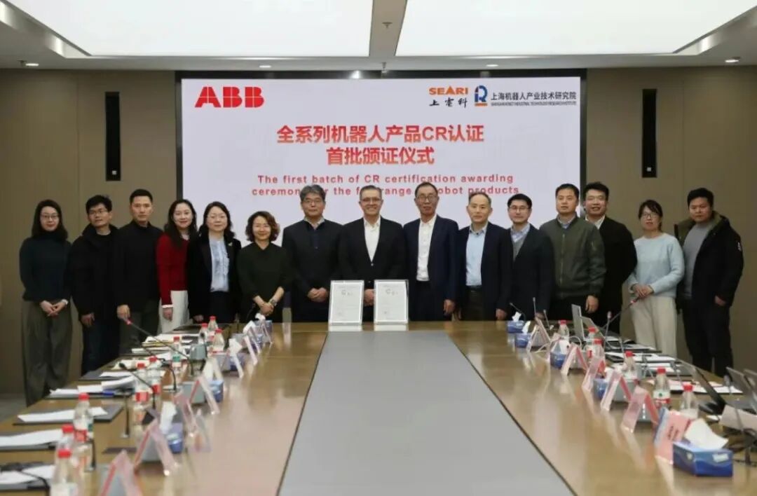 近日,ABB机器人全系列产品首批“CR认证”颁证仪式在上海电器科学研究所隆重举行,标志着ABB成为首家完成全系列机器人CR认证的外资企业。该认证由国家机器人检测与评定中心(总部)颁发,涵盖IRB 1600和CRB 1810等核心机型,是对产品安全性、可靠性及合规性的权威认可。此举不仅彰显ABB深度融入中国标准体系、坚定在华长期发展的承诺,也体现中国机器人检测认证体系日趋成熟并具备国际接轨能力。