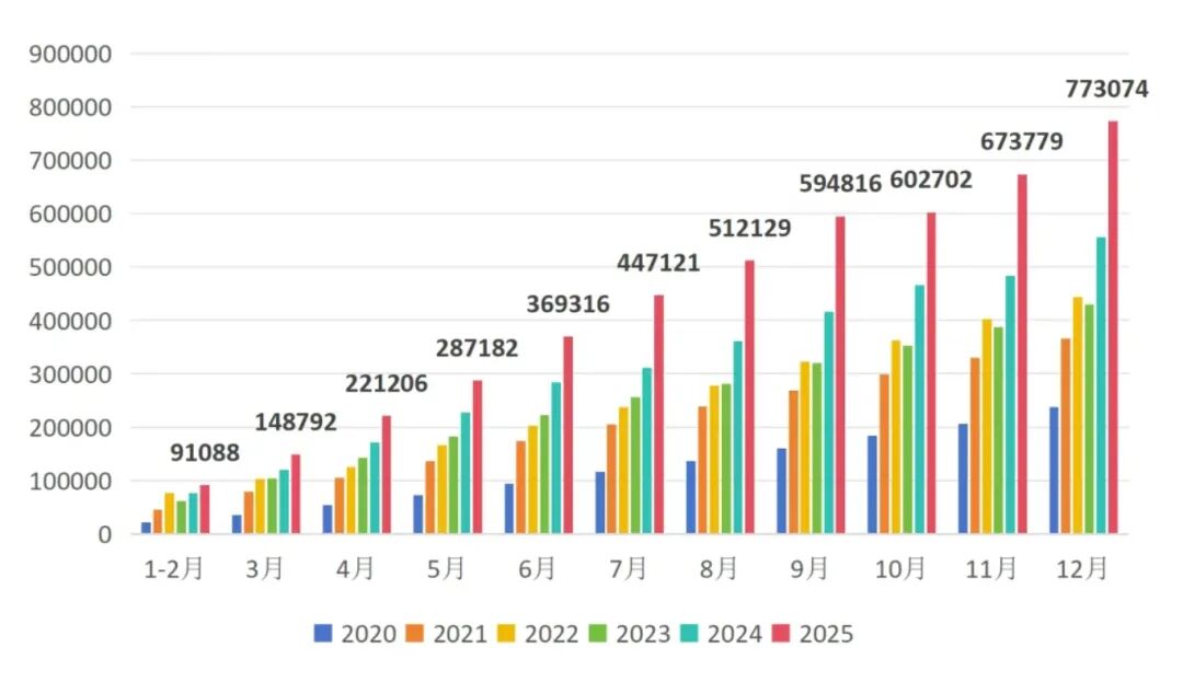 2025年1-12月全国工业机器人产量达773,074套,同比增长28.0%