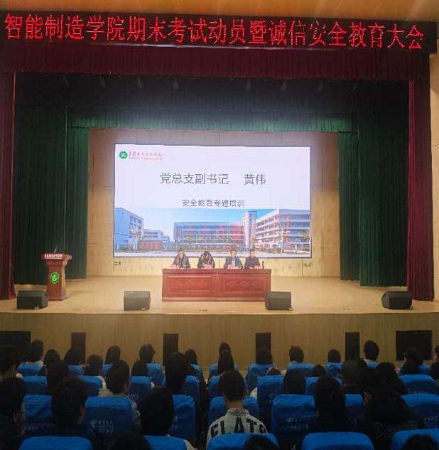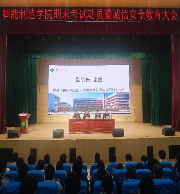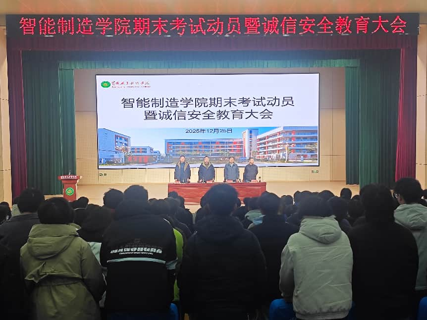 为严肃考风考纪,筑牢校园安全防线,12月25日下午,智能制造学院在武穴学院学术报告厅召开2025-2026第一学期期末考试动员暨安全教育大会。学院党总支书记倪祥明、副书记黄伟、副院长金鑫、2025级专兼职辅导员及新生参会。