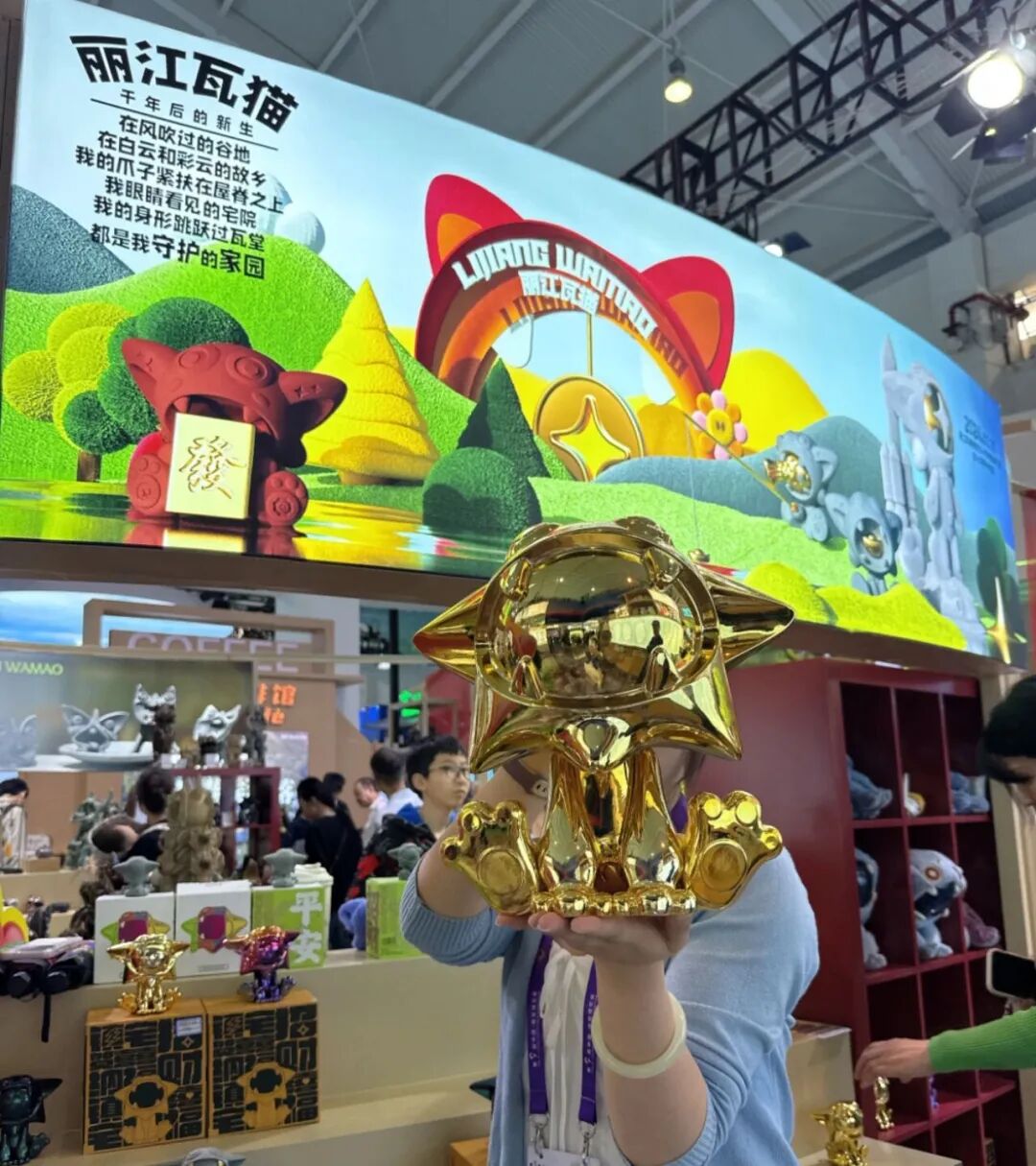 最令中外客商惊叹的,莫过于那群从屋檐上“走”下来的瓦猫。作为云南极具辨识度的文化符号,瓦猫在2025年的南博会上实现了现象级的出圈。从传统的镇宅神兽到精致的文创伴手礼,甚至是联名潮玩,瓦猫的身后是一条正在崛起的非遗文化产业链。这种文化符号的成功转化,不仅带来了会期内意向订货额的大幅增长,更向世界传递了一个明确信号:非遗可以很时尚,也可以很市场。当一位来自中东的贸易商在瓦猫展台前久久流连,最终签下意向订单时,这种“出海”已经超越了实物交易,实现了品牌价值在国际话语体系中的成功转译。