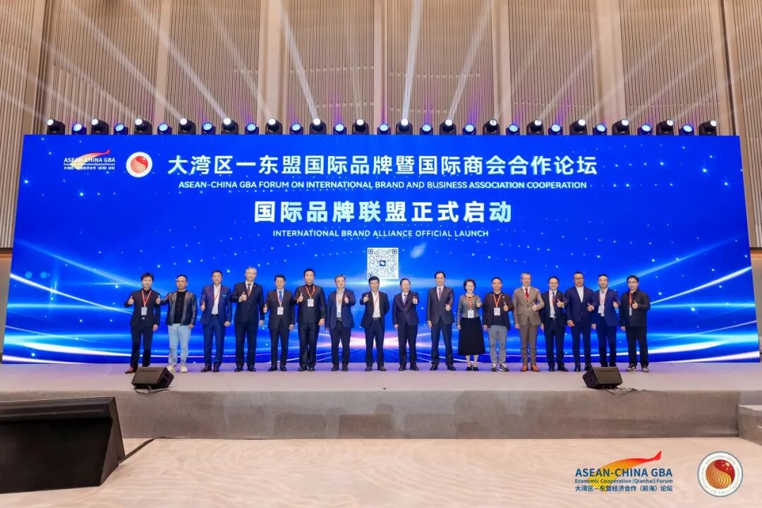 论坛现场亮点纷呈,核心合作机制落地成为跨境合作的重要里程碑。粤港澳大湾区与东盟国家品牌合作紧密关联的“国际品牌联盟”正式启动。该联盟由中国-东盟产促会牵头,广东高科技产业商会、菲华各界联合会等积极参与,而深耕品牌培育的深圳工业总会、香港中华厂商联合会、香港品牌发展局、东盟连锁企业联合会合力推动。这些来自大湾区与东盟国家的重要商会及广州医药、创维集团、冠旭电子、侨丰行、佳宁娜、紫荆1号等17家发起机构代表共同触屏启动联盟,标志着深圳市进出口商会等100多家参与发起联盟的品牌商协会、企业正式携手,区域品牌协同发展迈入规范化、规模化新阶段。