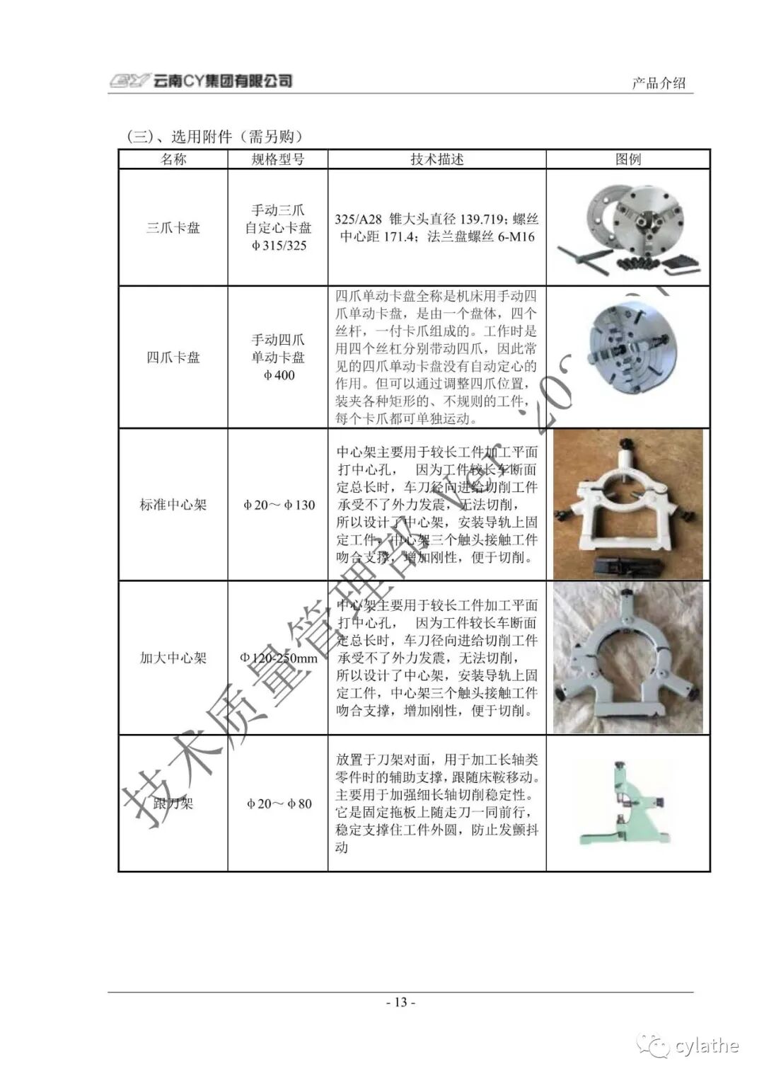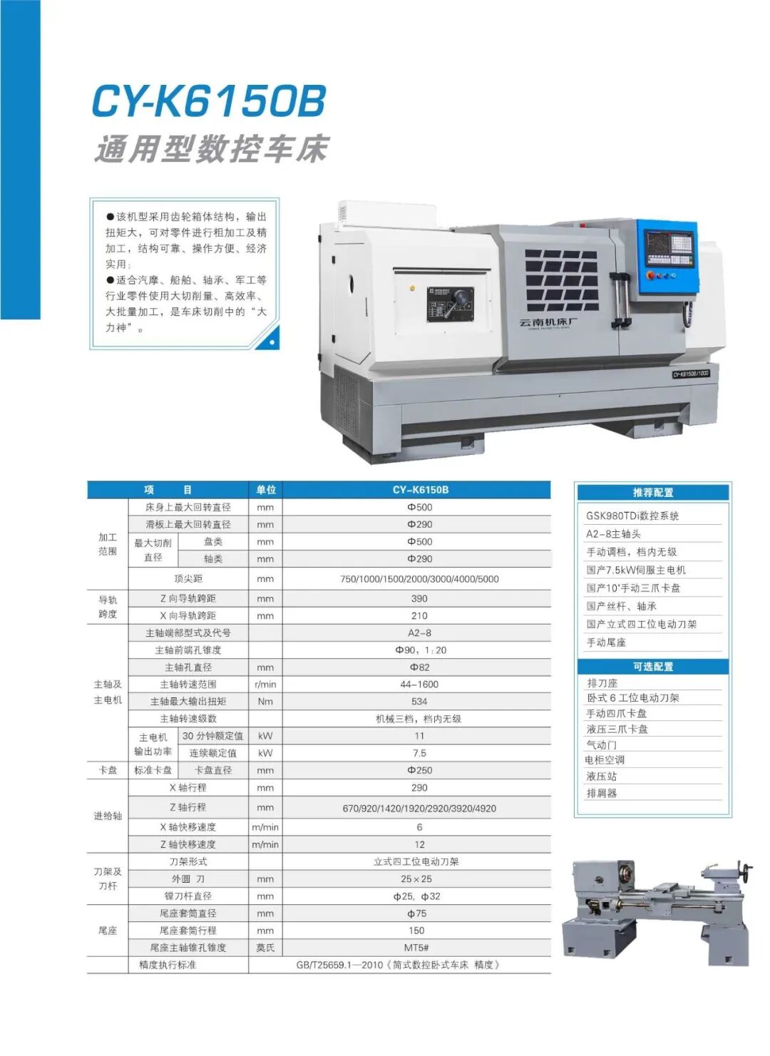云南机床厂CY-K6150B系列标准配置(2米,3米,4米,5米规格):