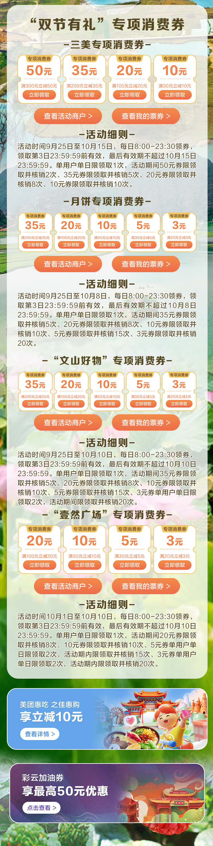 国庆中秋双节期间,云南省商务厅推出“双节特刊·消费看云南”板块,聚焦州市特色促销活动,带领大家逐一探访云南假日期间丰富多彩的消费场景,感受云南市场的蓬勃活力与火热氛围。