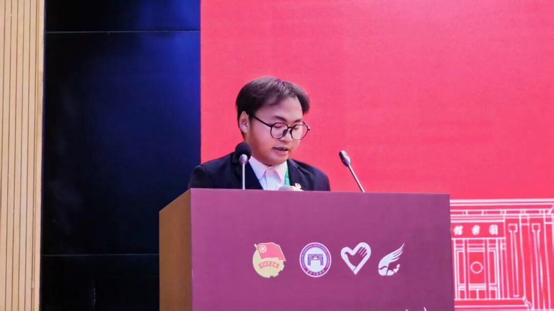 随后,兄弟院校滇池学院青年志愿者协会副理事长杨智敏登台致辞。他回顾了与云工商青志联在多项志愿服务中携手合作的经历,高度赞扬了云工商志愿者在跨校联合活动中展现出的专业素养、协作精神与深厚情谊,并表达了未来继续深化合作、共促青年志愿服务事业发展的美好愿景。