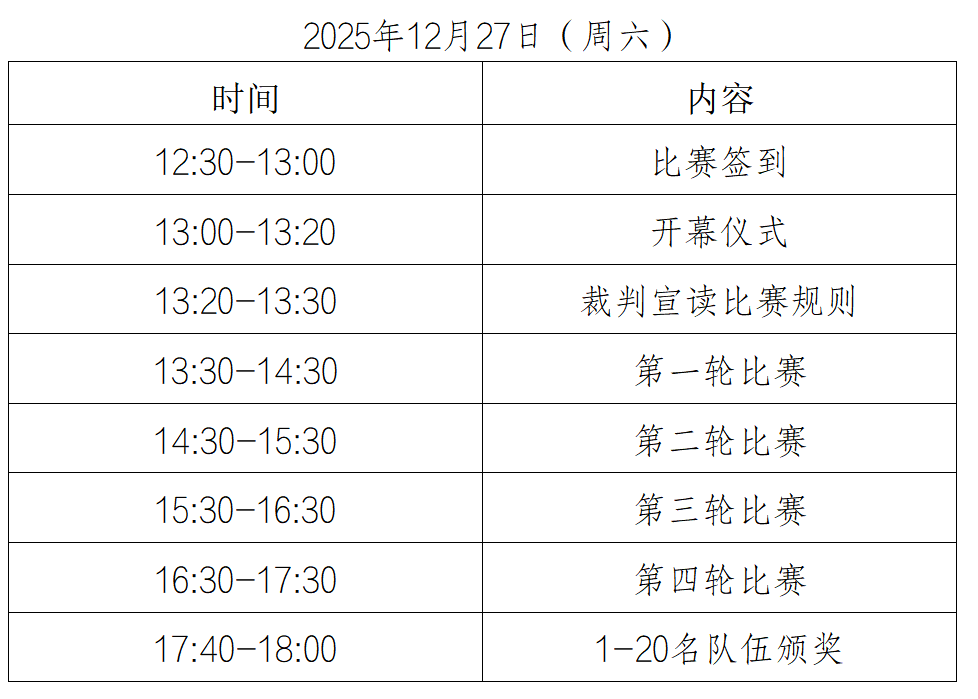 后续确认(2025年12月15日9:00起):在首批参赛名额确认完成后,组委会将根据场地情况,启动对其他地区已登记队伍的审核,并逐一通知结果。