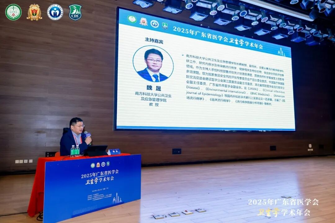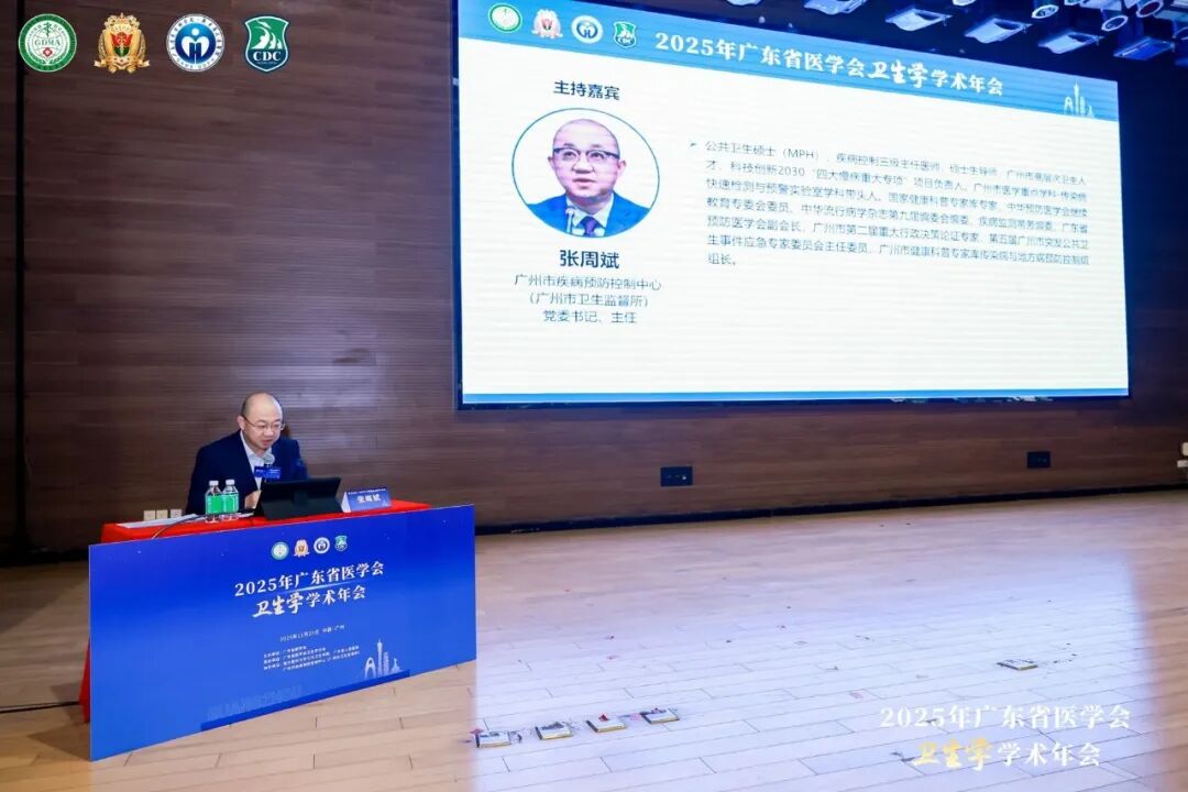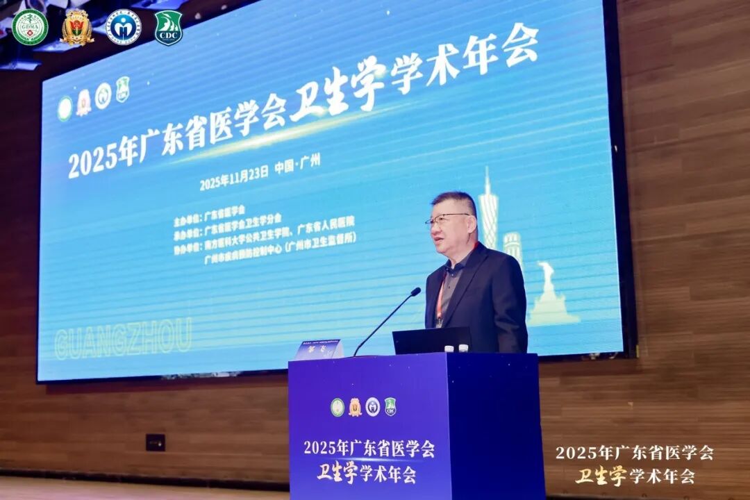 2025年11月23日,广东省医学会卫生学分会2025年学术年会在广州圆满落幕。本次会议由广东省医学会卫生学分会承办,南方医科大学公共卫生学院、广东省人民医院以及广州市疾病预防控制中心共同协办。会议邀请南方医科大学副校长杨海文为会议致辞;南方医科大学公共卫生学院首席专家邹飞教授主持开幕式。暨南大学疾病预防控制研究院院长梁晓峰、西安交通大学公共卫生学院学术委员会主席庄贵华、北京大学公共卫生学院党委书记郝元涛、深圳市卫生健康发展研究和数据管理中心主任和晓峰、北京协和医学院群医学及公共卫生学院副院长冯录召及清华大学讲席教授、南方科技大学全科医学院院长梁万年为大会作了精彩报告。学术报告由广州医科大学公共卫生学院院长蒋义国、广州市疾病预防控制中心党委书记及主任张周斌、南方科技大学公共卫生及应急管理学院教授魏晟、中山大学公共卫生学院副院长王庆、珠海疾病预防控制中心主任武婕和广东药科大学公共卫生学院院长唐杰共同主持。