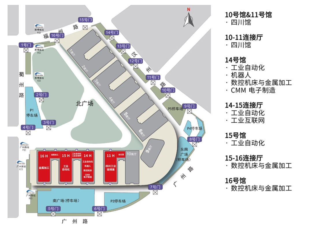 成都工博会旗下分设工业自动化展、数控机床与金属加工展、机器人展、新一代信息技术与应用展(工业互联网展)、节能与工业配套展及新材料展等六大主题展。