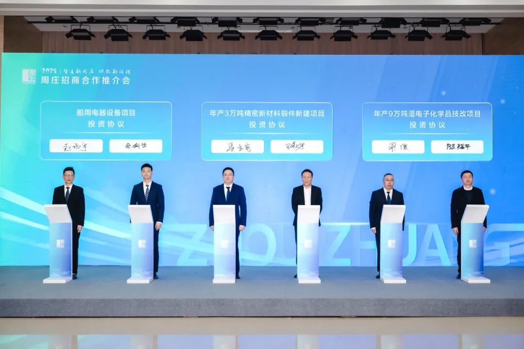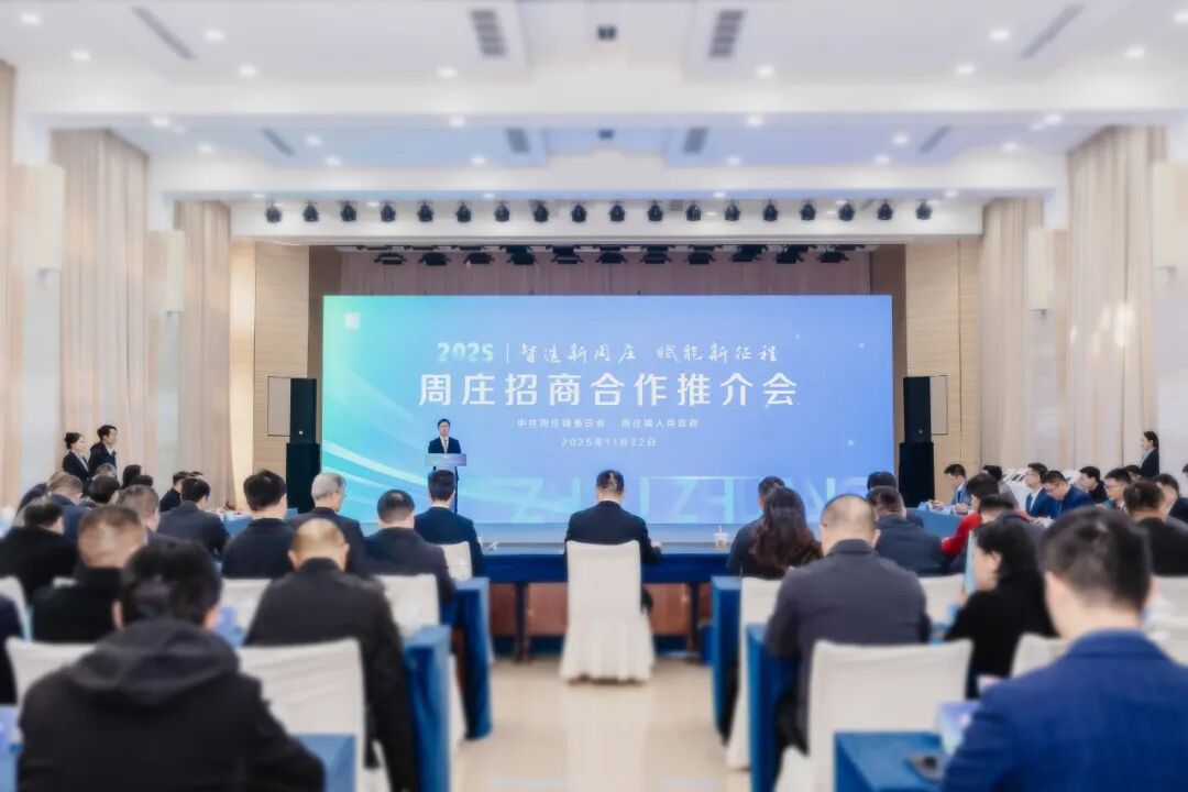 今天上午,我镇举行2025年招商合作推介会,以“智造新周庄 赋能新征程”为主题,紧扣科技产业创新融合的导向,紧扣“十五五”开篇的时代使命,全面展示周庄的发展新机遇、开放新优势和创新新成果,共同构筑合作共赢的发展新生态。