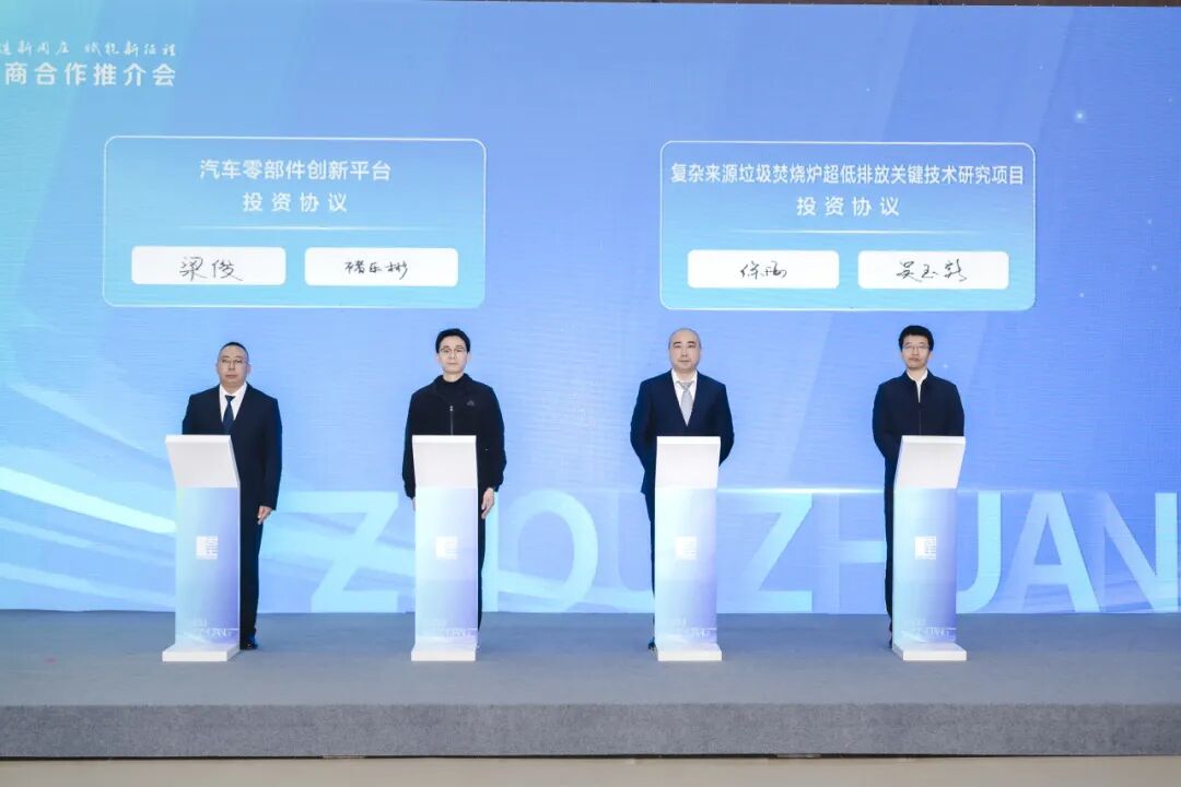 ▲汽车零部件创新平台项目、复杂来源垃圾焚烧炉超低排放关键技术研究项目进行签约