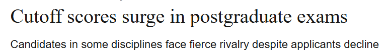 本月早些公布的数据显示,哲学、历史学、理学、医学、体育学等学科的国家线有所上涨,反映出考研竞争依然激烈。