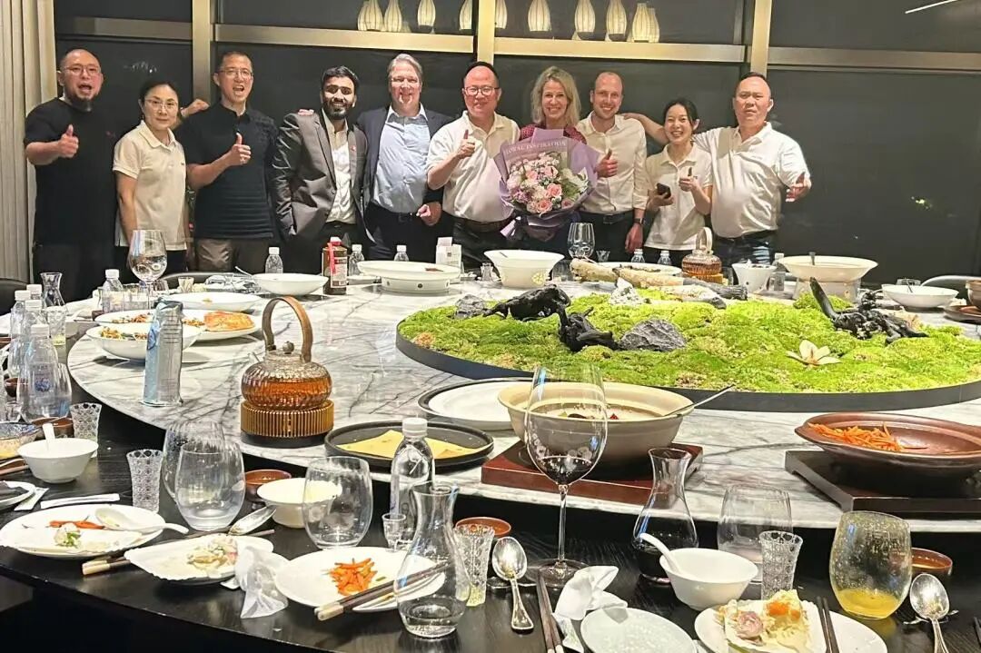 6 月,上海 CPHI 展期间与欧洲、南亚地区客户达成合作意向,公司负责人陪同国际客户出席行业外商招待宴会,进一步深化国际合作伙伴情谊。