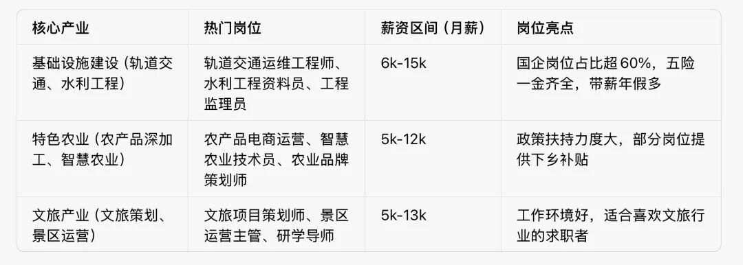 中西部(以成都、重庆、武汉、西安为核心,辐射郑州、长沙、昆明等城市)是我国产业转移的主战场,基础设施建设、特色农业、文旅产业三大领域岗位需求旺盛,年底补招岗位以国企岗、事业单位岗、基层服务岗为主,稳定性强,生活成本低。