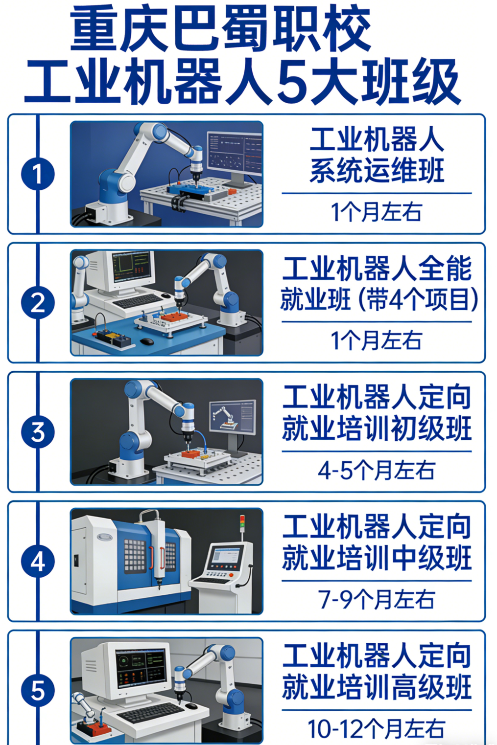 重庆巴蜀职校2026春季工业机器人火热招生中,专为零基础、想快速学技、稳拿高薪的你量身定制,坚持三分理论、七分实操,专注实战技能打磨,学完就能上岗,彻底打通“学技-就业-高薪”快车道!