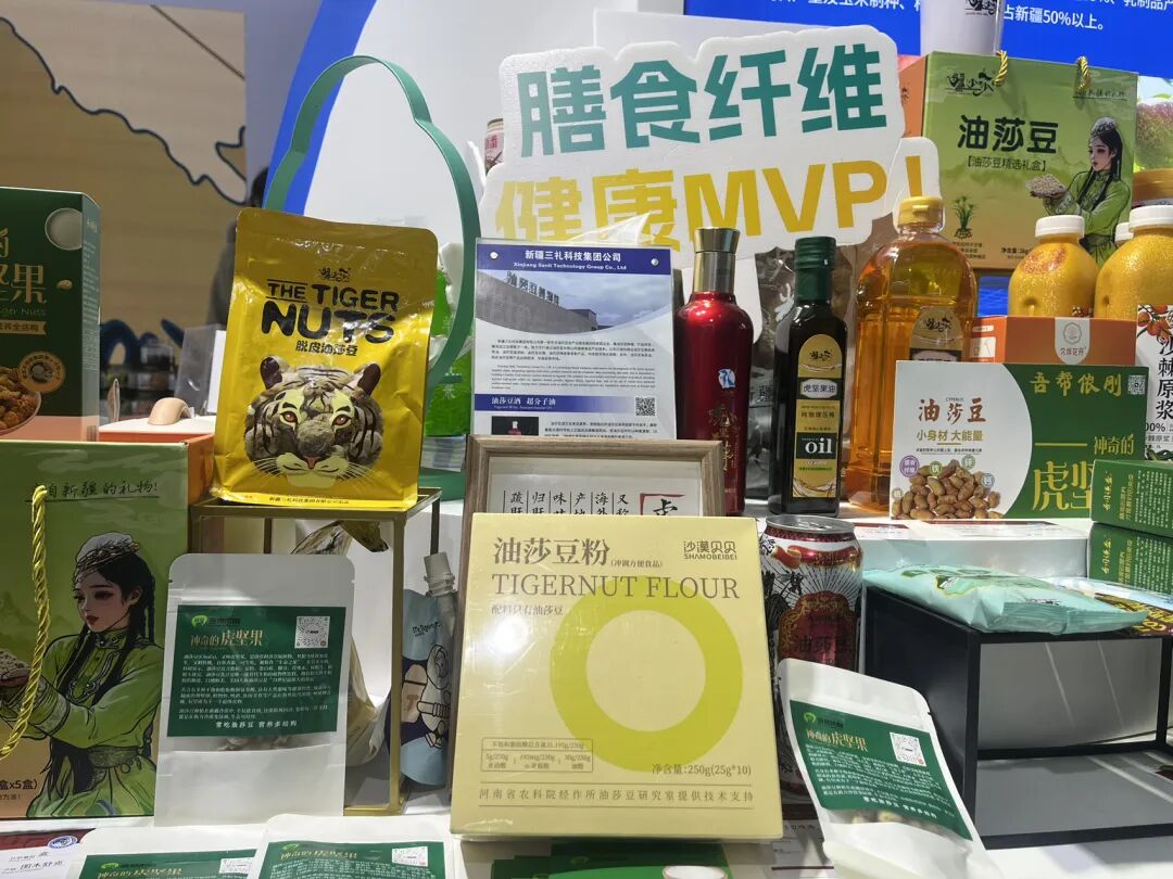 沙漠贝贝旗下产品油莎豆粉在新疆生产建设兵团食品展区完成全球展会秀,以“单一配料”的纯粹特质和生态赋能的发展理念,吸引众多中外采购商与观众驻足。
