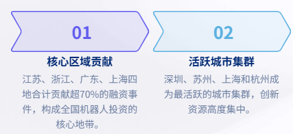 地域分布上,长三角与珠三角依然是绝对主力。江苏、浙江、广东、上海四省市合计贡献了超过 70% 的融资事件。其中,苏州(7起)、深圳(10起)、杭州(6起)、上海(7起)表现最为活跃,形成了明显的区域创新集群。