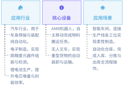 代表项目如 迦智科技(C+轮融资1.8亿元)、姜歌机器人(B轮融资)等。它们提供的 AMR(自主移动机器人)、无人叉车、智能分拣系统,已经深入汽车、电子、锂电、光伏等行业的车间与仓库,直接为企业降本增效。