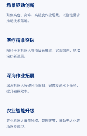 这类项目的投资逻辑在于 “技术稀缺性”与“场景封闭性”。谁能解决某个高危、高难或高精度的特定作业问题,谁就能建立起强大的护城河。
