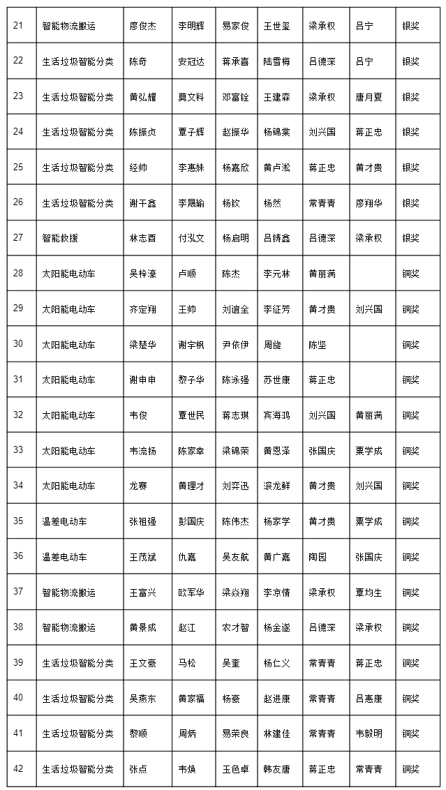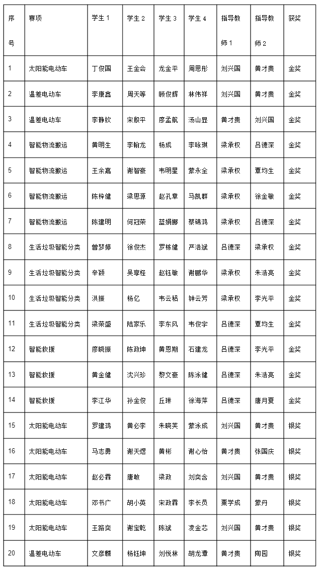 智能制造学院的参赛队伍在太阳能电动车、温差电动车、智能物流搬运、生活垃圾智能分类、智能救援五个赛项中表现出色,荣获金奖14项、银奖13项、铜奖20项。广西大学生工程实践与创新能力大赛是自治区教育厅在《自治区教育厅关于公布2025年广西高校大学生学科专业竞赛有关信息的通知》中指定的3个A类竞赛之一,这充分展示了我院一贯坚持的“以学生为中心,实践能力为先”的应用型本科教育理念,以及对学生创新能力培养的持续重视。
